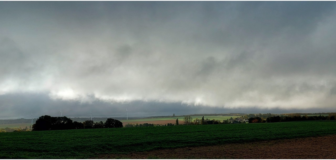 La dernière décade aura été souvent très perturbée, le soleil s'étant fait fort discret. Raison pour laquelle il faut profiter d'une belle éclaircie, où le soleil se partage le ciel avec les nuages, comme ici à Monbliart, le 26 octobre 2025.
