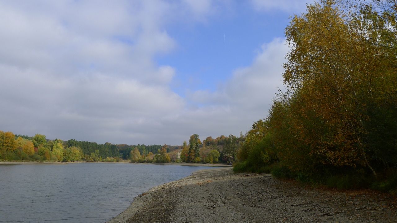 Quelques timides éclaircies à Butgenbach, le long du lac, le 14 octobre 2025.