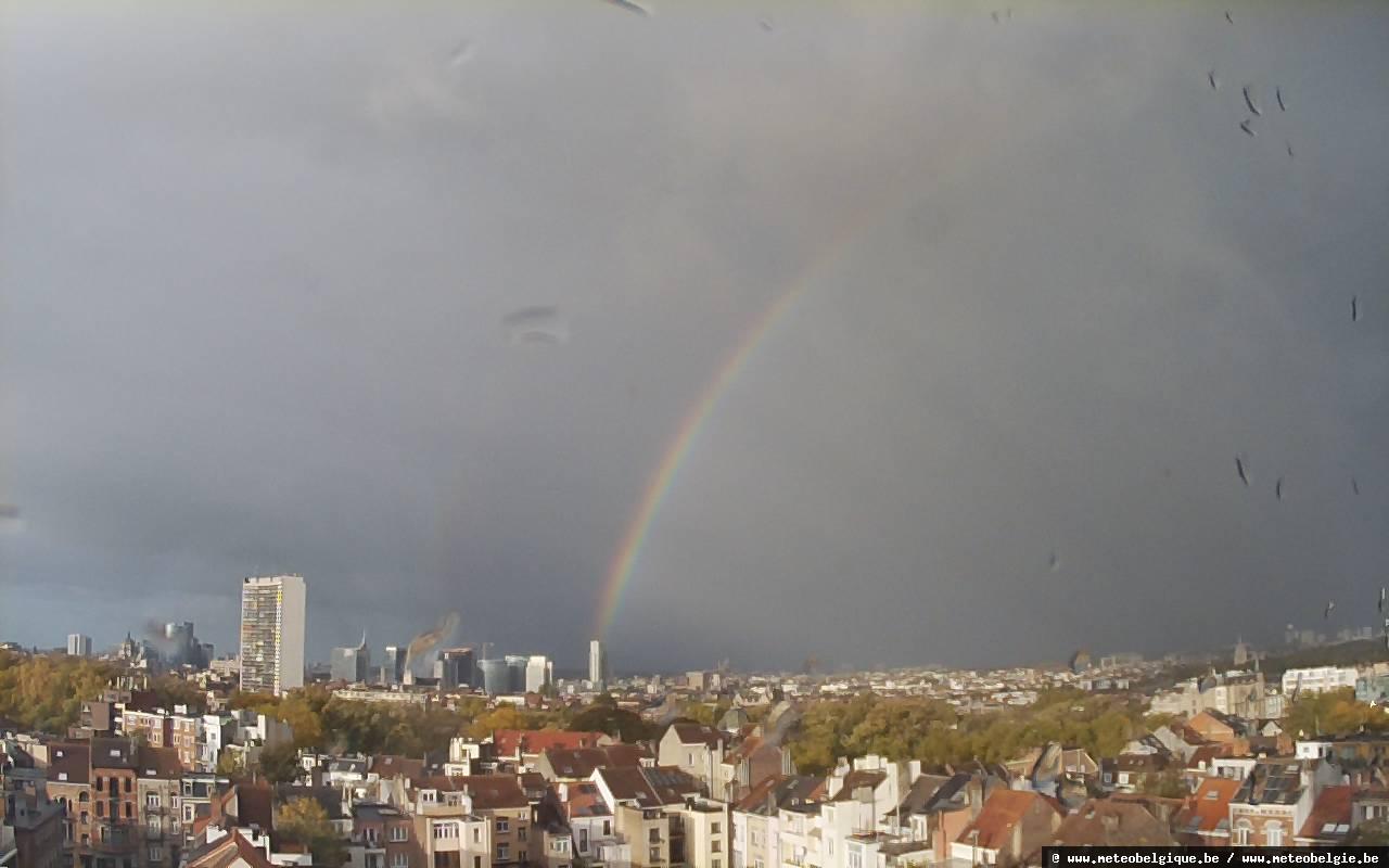Arc-en-ciel dans le ciel bruxellois vu de Schaerbeek, le matin du 27 octobre 2025.