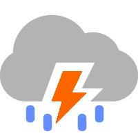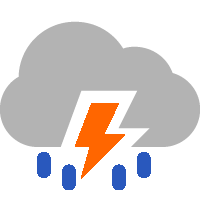 ![]() | Pluie localement orageuse | ![]() | Pluie orageuse |
